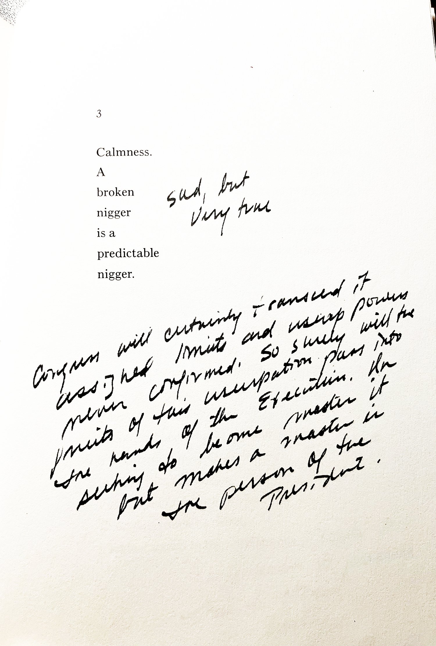 Though self-proclaimed “mock historical document,” the entirety of this collection is alarmingly plausible. These pieces are impossible to read without a certain degree of dissociation, as the feelings they stir up in the reader are not only uncomfortable, but immediate and absolutely necessary. This collection is crucial to understanding the kind of white privilege enjoyed by the American ruling class by putting the spotlight on the exact kind of values and acts of cruelty this American land was colonized with.