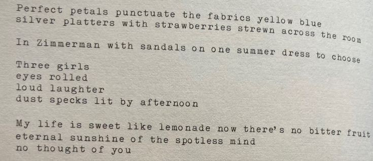 Lana Del Rey is a fabulous storyteller. In her work, “My Bedroom is a Sacred Place Now,” she paints a lucid character possessing strong self-awareness while writing a letter to an ex-friend or lover, “when I wrote you my last letter / ...you told me that I didn’t know who I was, but I do...”. Del Rey builds up this space for her story to grow organically, “my bedroom is a sacred palace now that there are children at the end of my bed / telling my stories about the friends that they pretend to hate...” She also has no shame but uses many directed emotional words, like in the poem, “Salamander,” where she drops the lines painting a picture of someone who is longing for love and understanding: